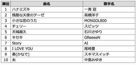- 一青窈の「ハナミズキ」が楽曲別で1位