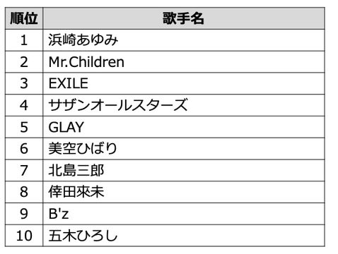 一青窈の「ハナミズキ」が【楽曲別】で1位を獲得し、浜崎あゆみが【歌手別】で首位になりました。