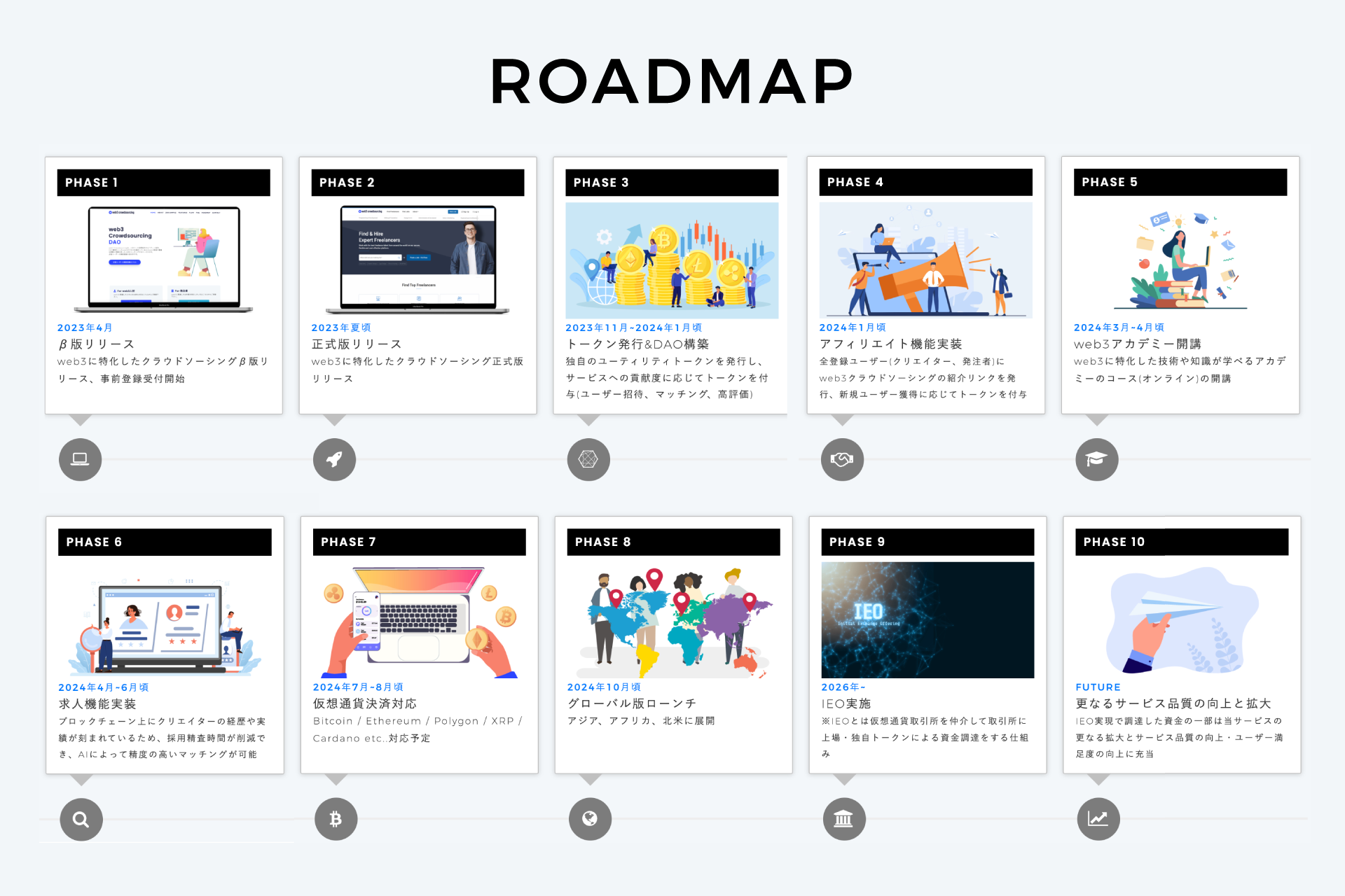 更に2026年以降は、更なるサービスの拡大、サービス品質の向上、ユーザー満足度の向上のためにIEO(仮想通貨取引所を仲介して取引所に上場・独自トークンによる資金調達)の実施を目指します。