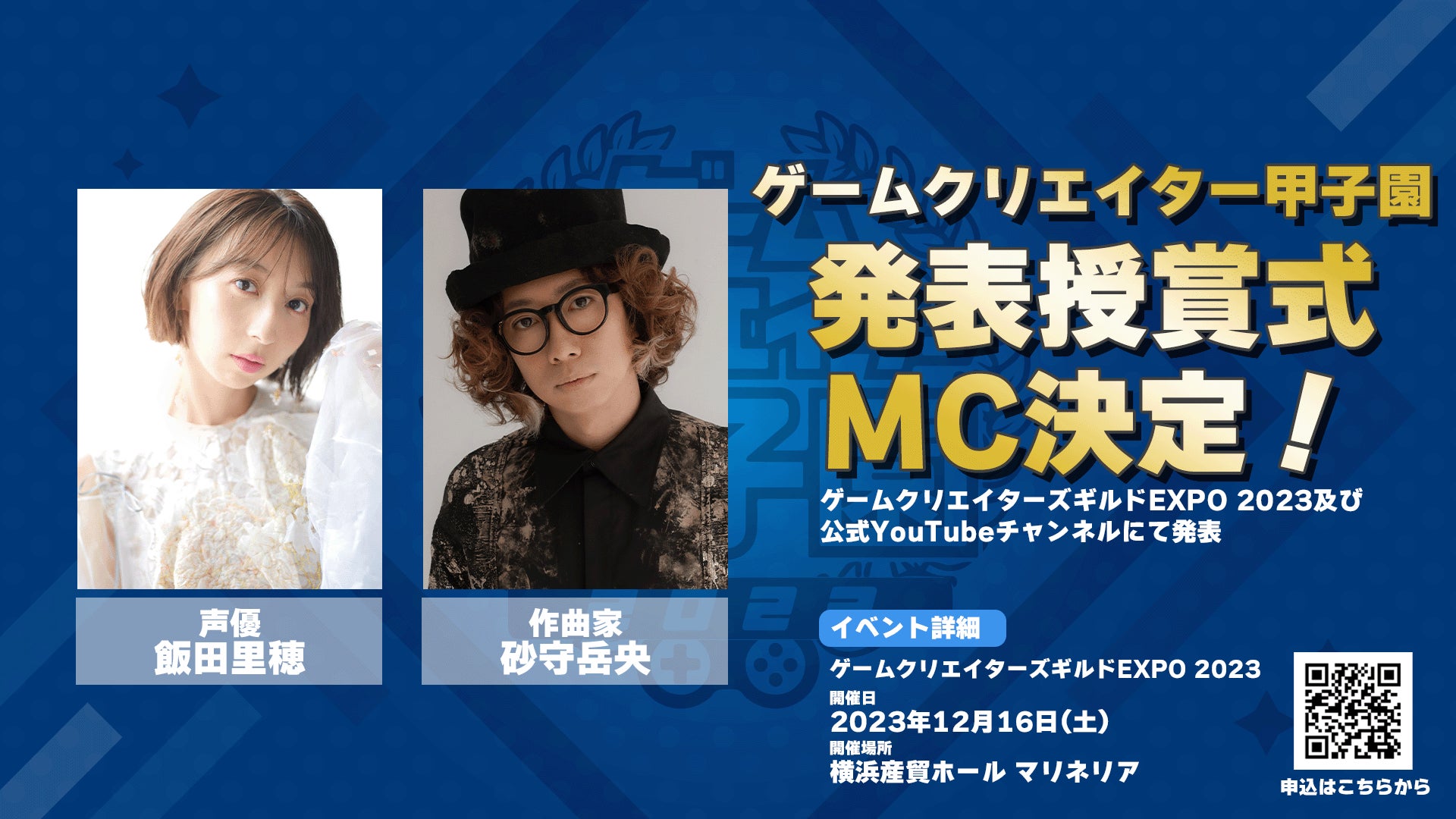 「ゲームクリエイター甲子園2023発表授賞式」は12月16日の11:30から17:30まで、「ゲームクリエイターズギルドEXPO 2023」のメインステージで開催されます。