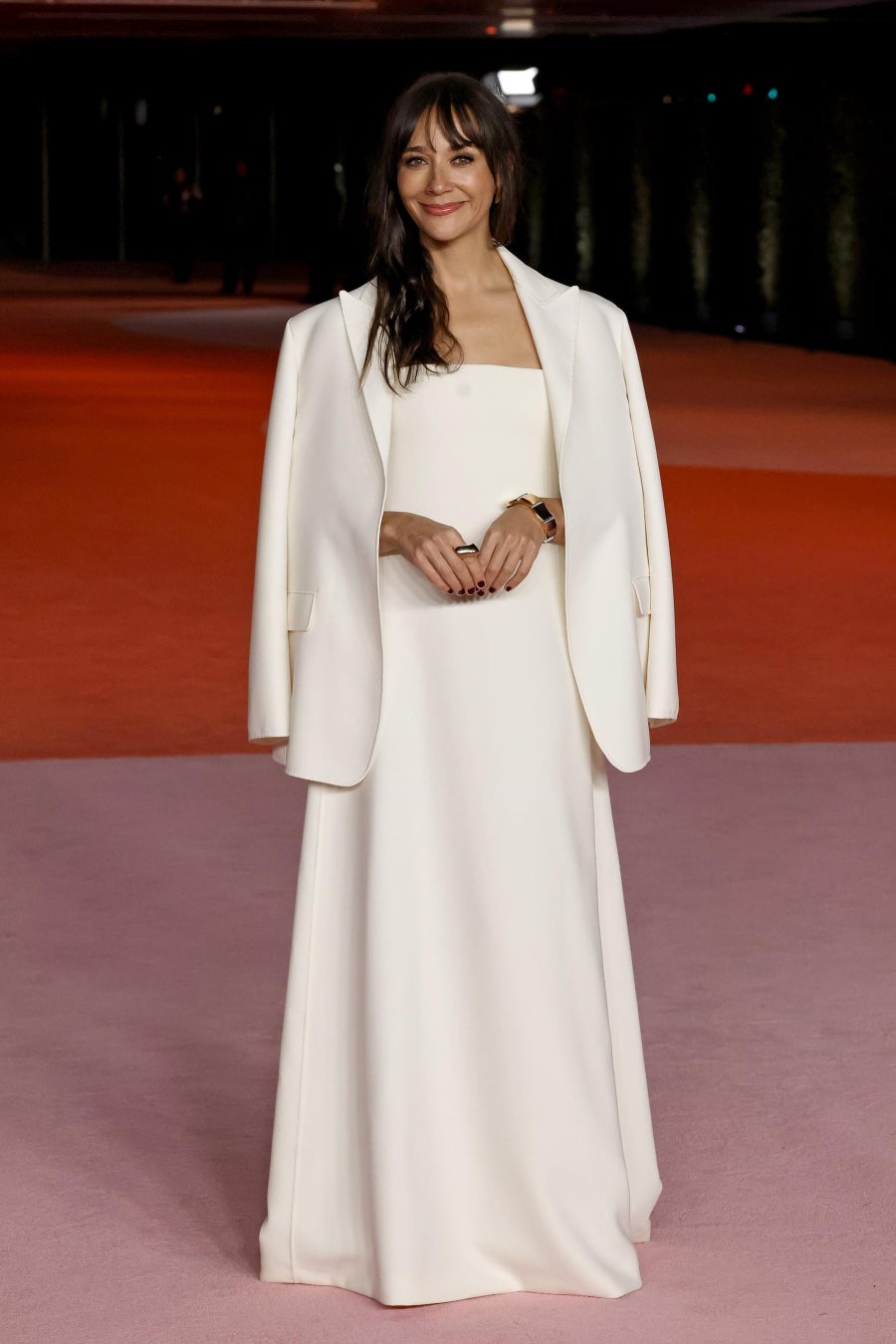 ラシダ・ジョーンズも同じコレクションから、ジャケットとストラップレスドレスのアンサンブルを選びました。