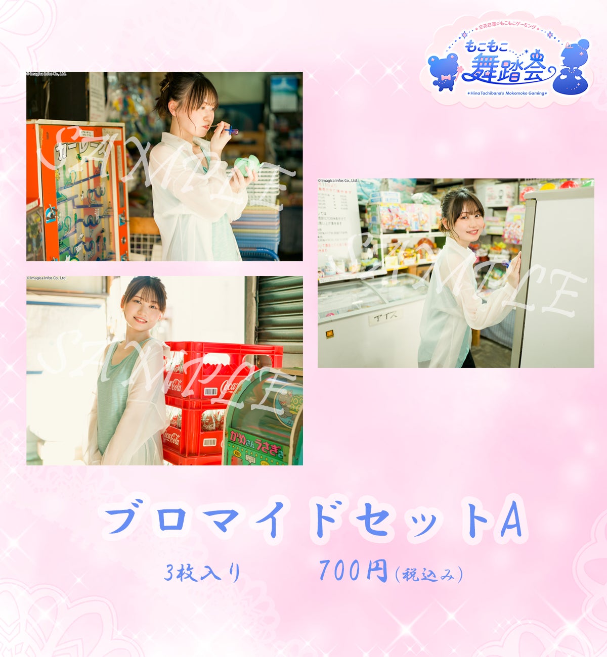 また、配信情報として、「立花日菜のもこもこゲーミング~もこもこ舞踏会~」の昼の部、夜の部、おまけの部の配信チケットが販売されています。