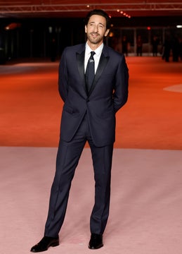 エイドリアン・ブロディは、キム・ジョーンズによるディオールのクリエーションであるネイビーウールとシルクのピークドラペルタキシードに身を包み、ホワイトコットンシャツとネイビーシルクタイを合わせ、ブラックのレザーダービーシューズで登場しました。