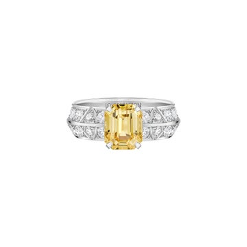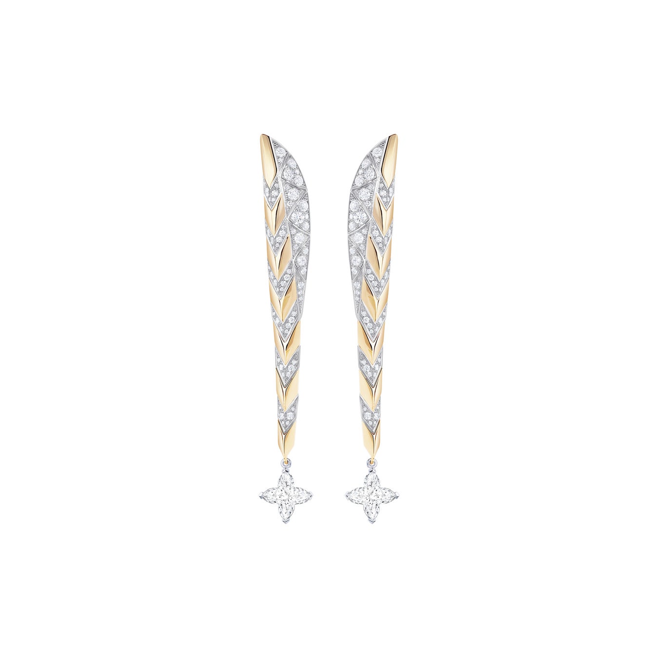 彼女はルイ・ヴィトンのハイジュエリーコレクションからも、ホワイトゴールドとイエローサファイアのリングと、イエローゴールドとホワイトゴールドにダイヤモンドをセッティングしたイヤリングを合わせました。