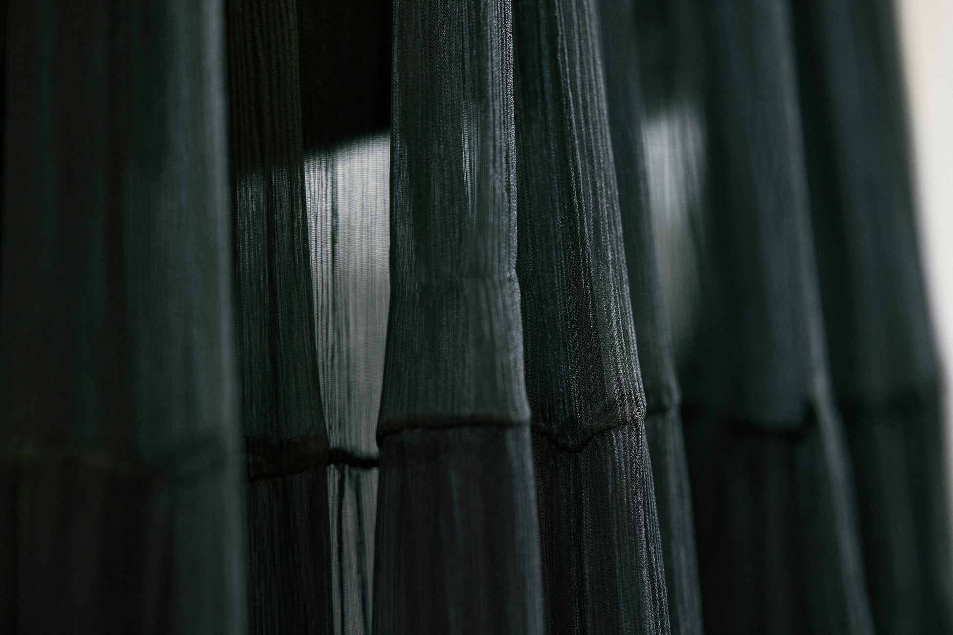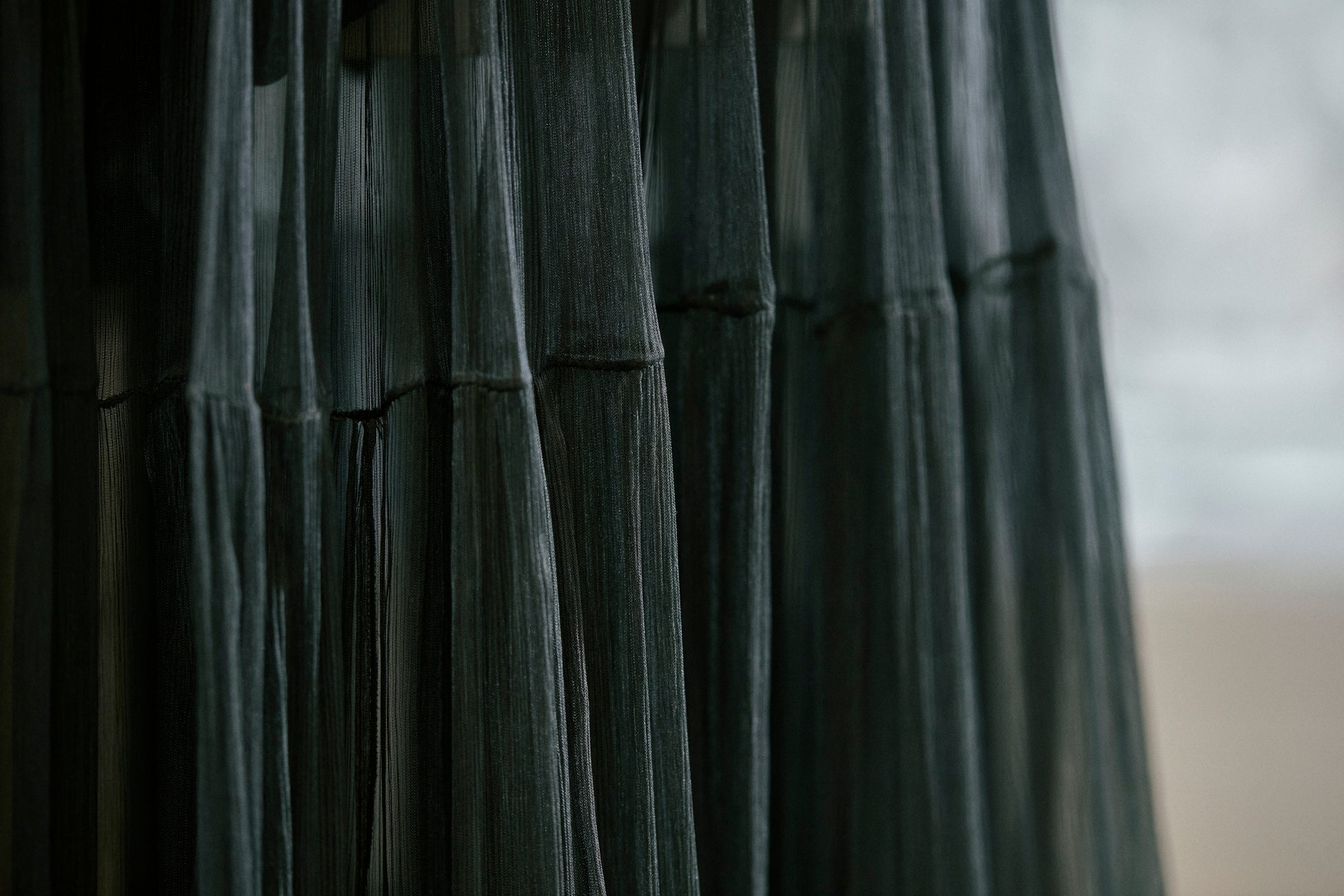 - ダークグレーグリーンシルククレポンシフォンのロングスリーブドレス