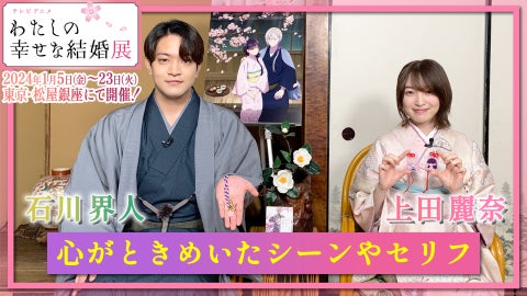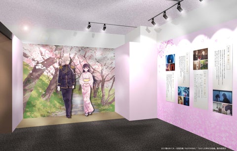 - 展示では、物語のはじまりや二人の出会いの場所を再現し、心ときめく名場面や感動の最終話を大画面で楽しむことができます。