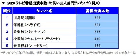 • 2023年、川島明さんが関東地域で年間1位を獲得