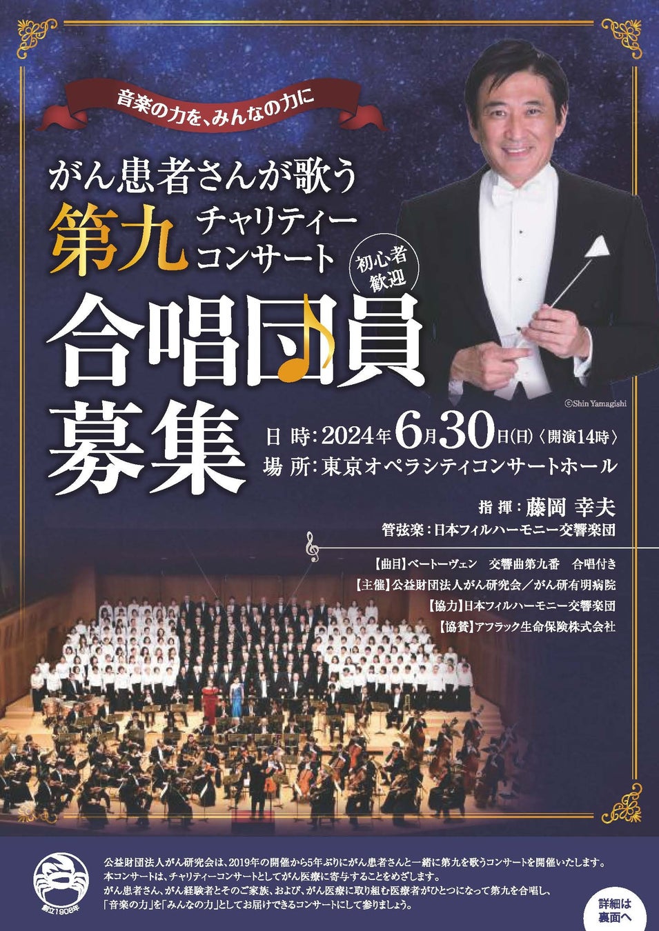 このコンサートは公益財団法人がん研究会/がん研有明病院が主催し、日本フィルハーモニー交響楽団が協力し、アフラック生命保険株式会社が協賛しています。