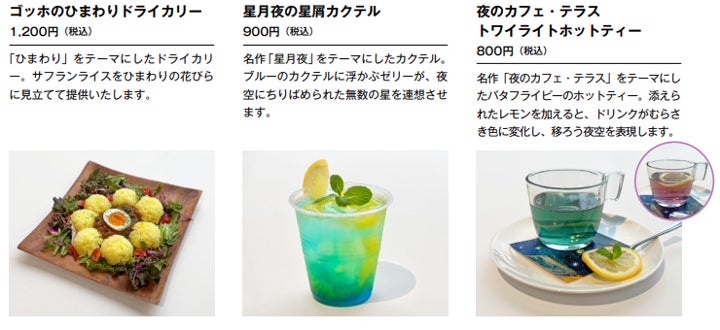 展覧会にはゴッホ・アライブオリジナルステッカーが特典としてプレゼントされ、また「WHAT CAFE」ではゴッホ作品をイメージしたオリジナルメニューが提供されます。