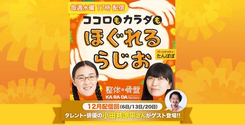 整体×骨盤サロン「カラダファクトリー」たんぽぽ白鳥久美子・川村エミコがMC!ポッドキャスト番組『ココロもカラダもほぐれるらじお』ゲストにタレント・俳優の小田井涼平さんを迎え新たな展開!