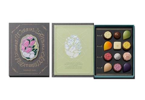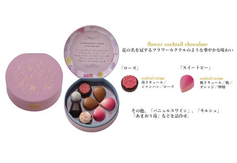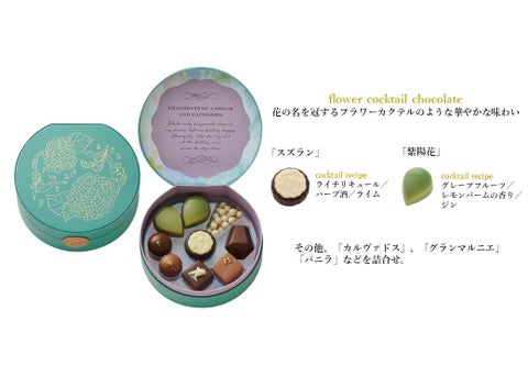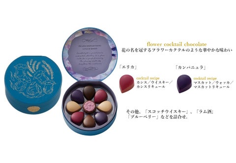 この商品は、花や酒をテーマにした4つのストーリーに合わせたチョコレートが詰め合わせられており、一粒一粒の味と香りを楽しむことができます。
