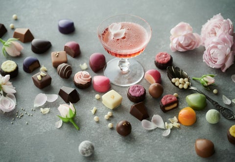 モロゾフでは、バレンタイン催事場やオンラインショップで購入できる「花と酒とチョコレート」を販売しています。