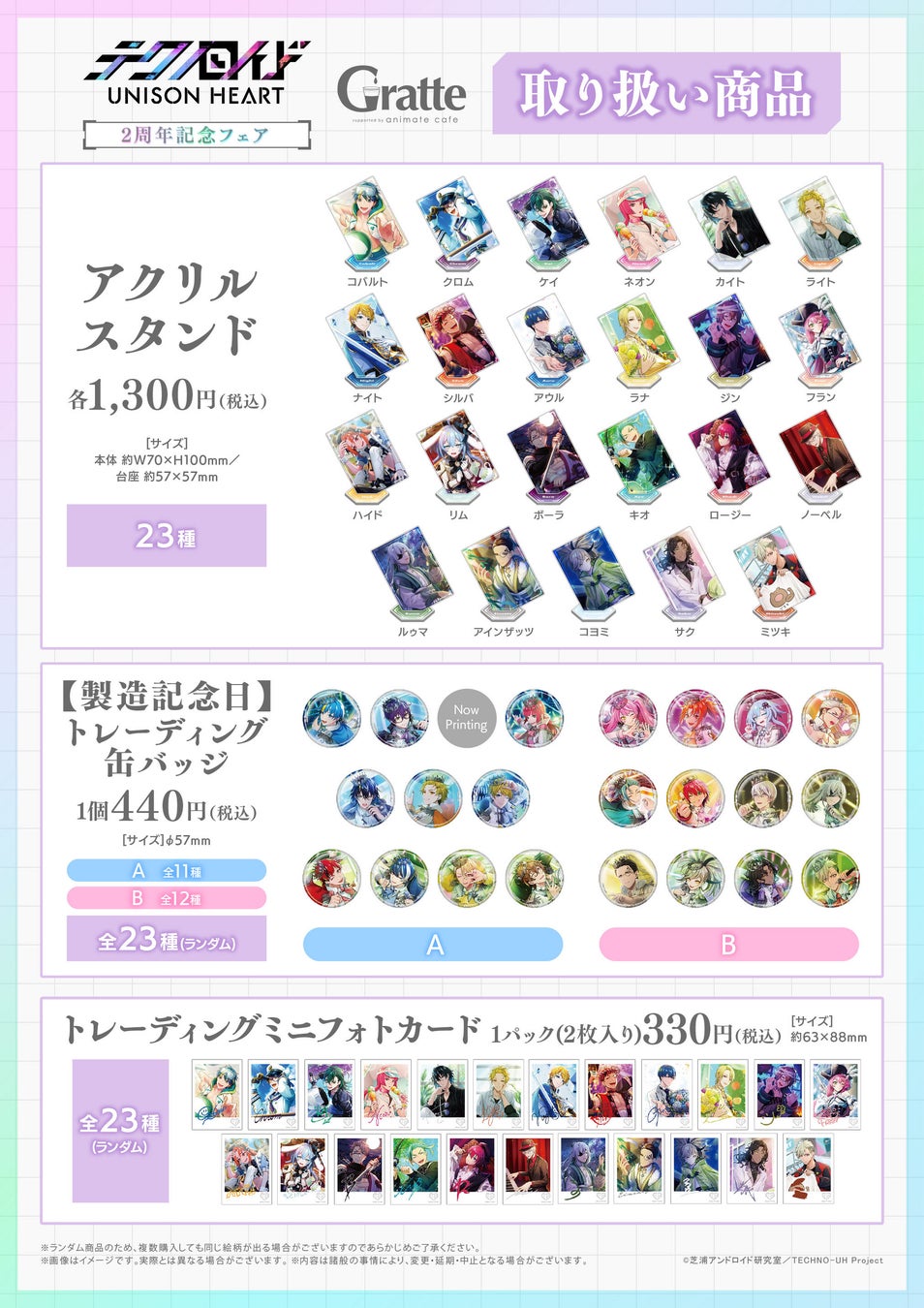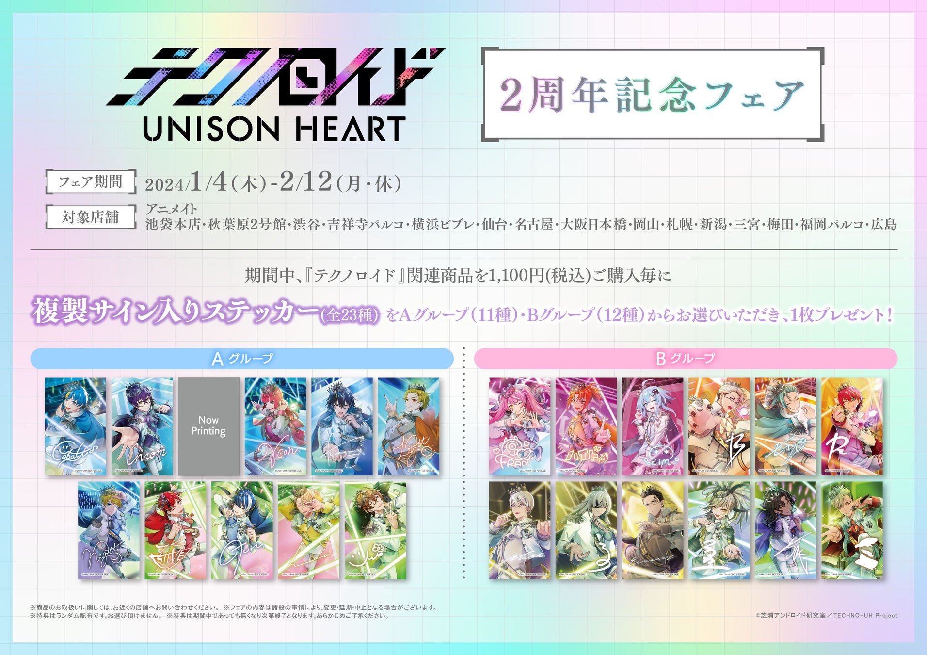 - ゲーム「テクノロイド ユニゾンハート」の2周年記念フェア&アニメイトカフェグラッテコラボが開催