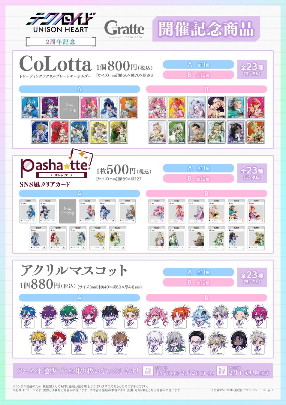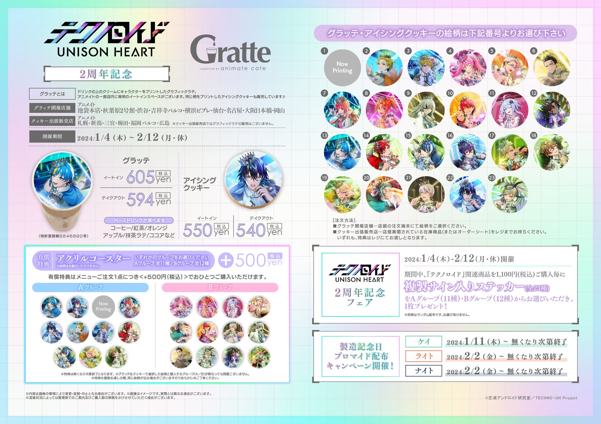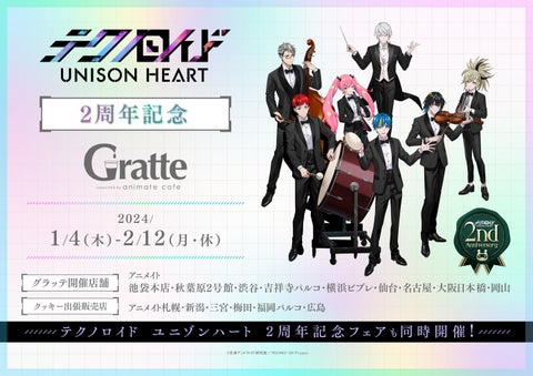 2024年1月4日から、ゲーム「テクノロイド ユニゾンハート」の2周年記念フェア&アニメイトカフェグラッテコラボが開催されます。