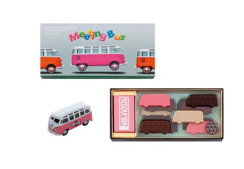 • 2024年限定デザインのミニカーが付いた商品もあり、アーモンドやフルーツ、キャラメルの味わいが楽しめる「Steel Container スチールコンテナ」や、鮮やかなレッドのピックアップトラックミニカーが付いた「Meeting Bus NE ミーティングバス NE 」などがある