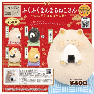 - ふくふくまんまるねこさん ~おにぎりほおばりの巻~、白猫さん、黒猫さん、サバ白さん、茶トラさん、三毛猫さん、2023年12月下旬、1回400円(税込)、6歳以上、PVC、H55×W40×D40mm、愛知県