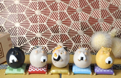 ラインアップは白猫さん、黒猫さん、サバ白さん、茶トラさん、三毛猫さんの全5種類で、ねこさんが座る座布団は別パーツとなっており、他の種類の座布団と交換して自由に組み合わせることができます。