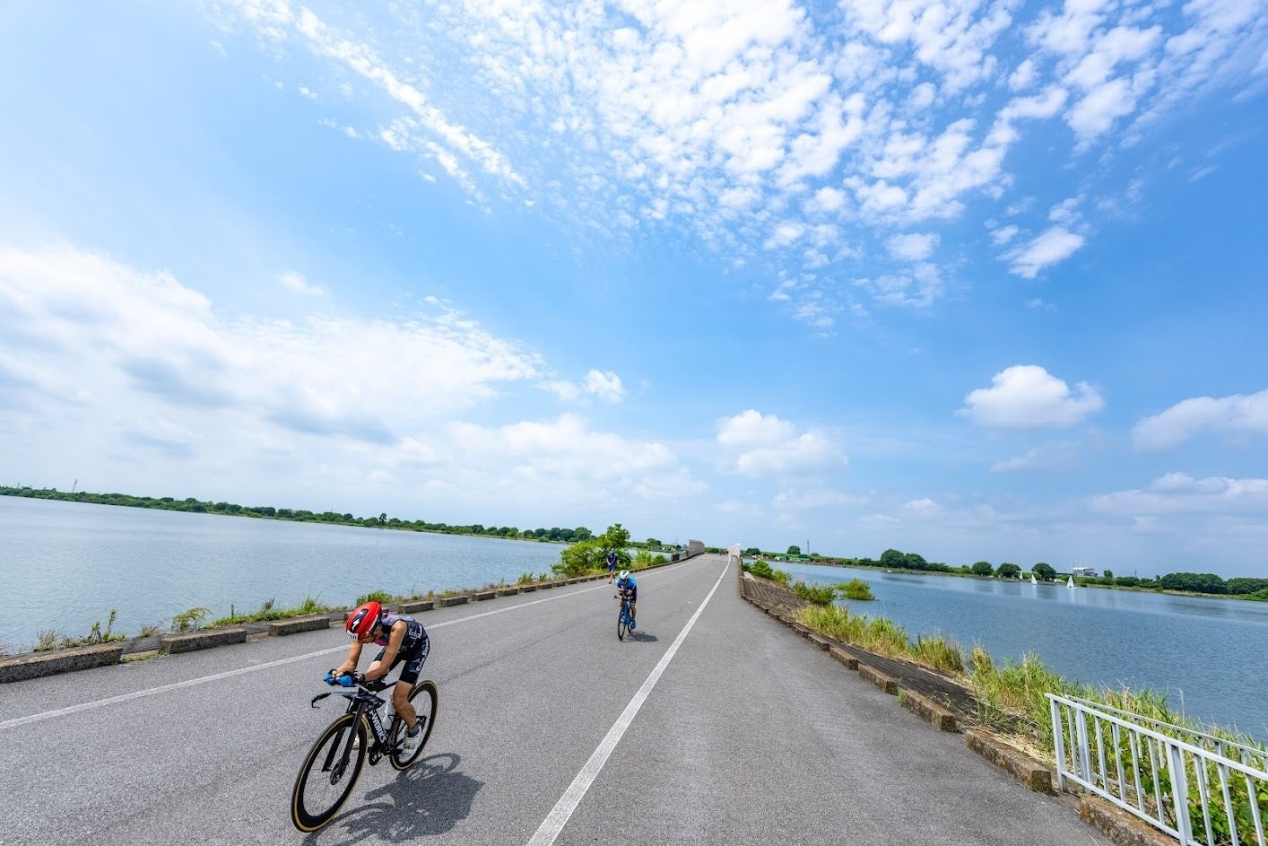 埼玉大会は、初心者でも挑戦しやすい波がない遊水池でのスイムとフラットなバイクコースが特徴で、高校生の部と中学生の部も設定されている。