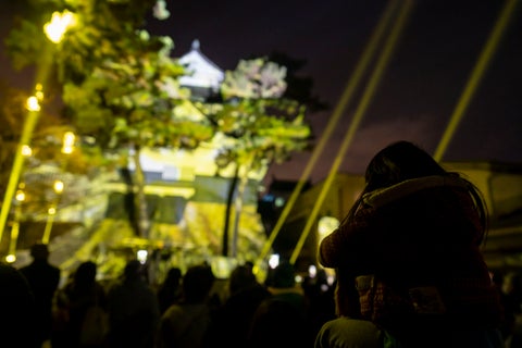 岡崎城天守閣と岡崎公園大手門では、プロジェクションマッピングが行われます。
