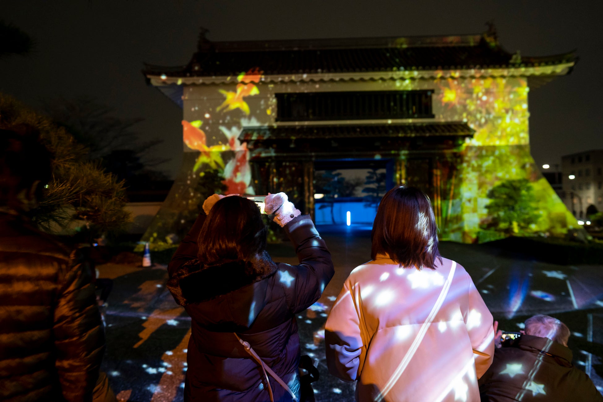 - 岡崎城天守閣と岡崎公園大手門でプロジェクションマッピング