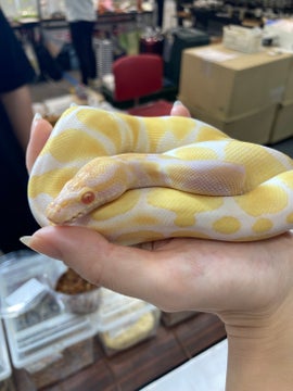 会場では、パンサーカメレオンやボールパイソンなどの珍しい生き物も見ることができます。