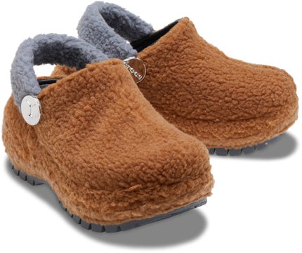 彼がデザインしたのは、心地よくて柔らかく、高さのあるメガクラッシュクロッグをシェルパで覆ったものです。