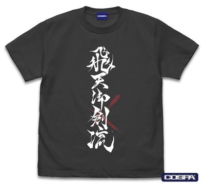 - シンプルなデザインのTシャツや飛天御剣流の筆文字がデザインされたTシャツも
