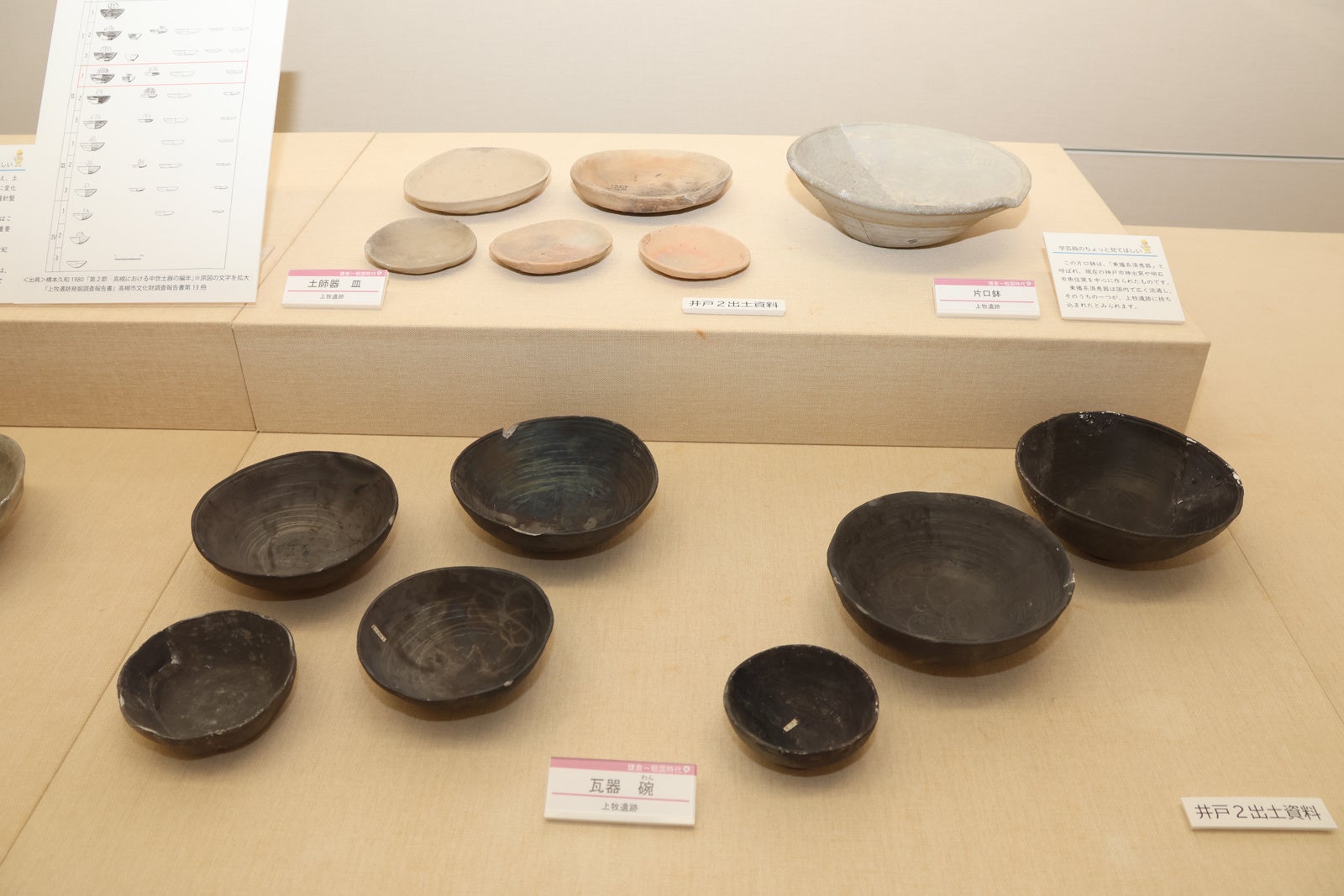 - 平安後期から鎌倉時代の遺跡から出土した「瓦器」も展示されている