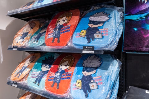 さらに、オリジナルショッパーやちびキャラクッション、アクリルスタンド連携必殺コレクション、劇場版「呪術廻戦 0」のタペストリー、バスタオル、バックプリントTシャツなども販売されています。