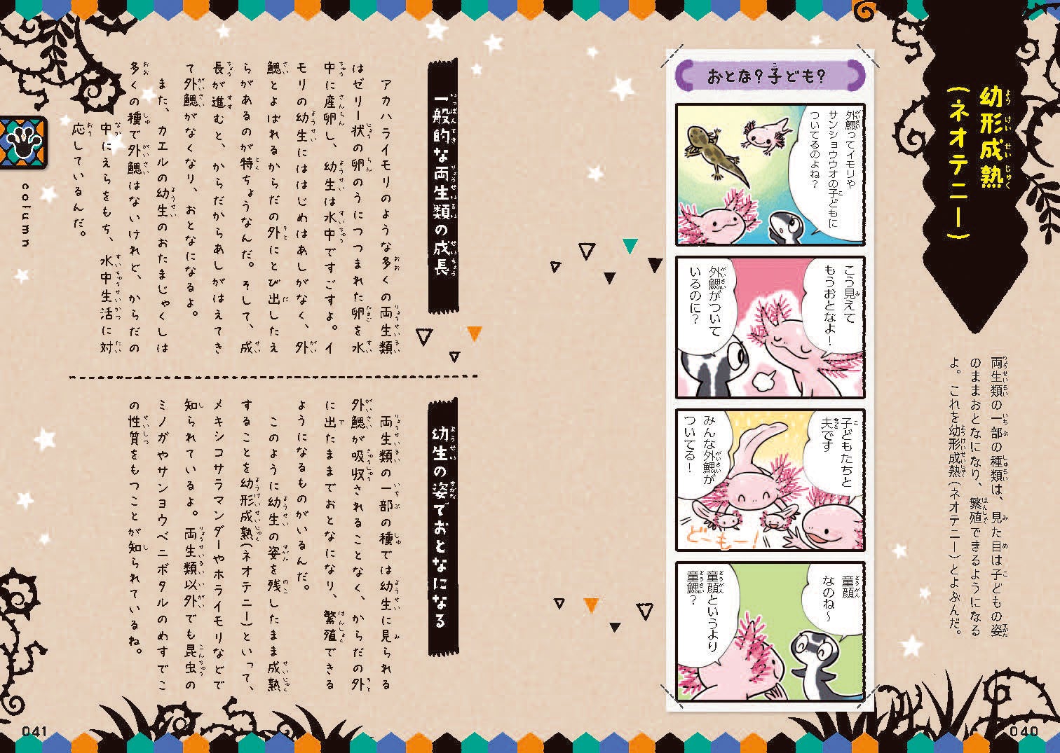 また、コラムでは両生類・爬虫類の興味深い生態や驚くべき事実も紹介しています。