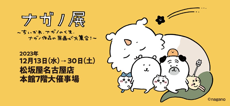 松坂屋名古屋店では、「ナガノ展~ちいかわ、ナガノのくま、ナガノ作品の原画が大集合!~」を開催します。