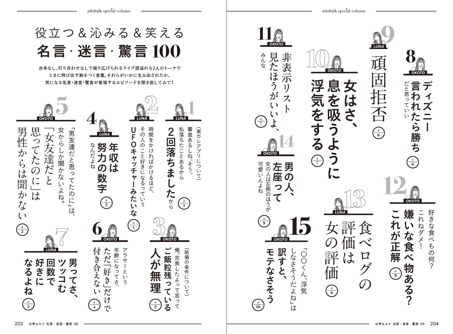 - 書籍にはソロインタビューや元カレ対談などのオリジナルコンテンツも収録されている。