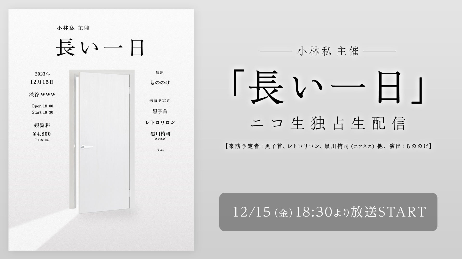 - 小林私の「長い一日」主催ライブがニコニコ生放送で独占生中継される