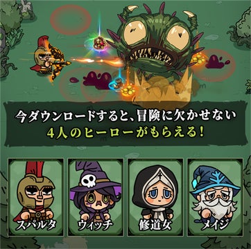 - ダウンロードするだけで4人のヒーローがプレゼントされる