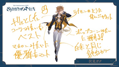 2023年12月23日(土)に開催される「にじさんじ 5th Anniversary LIVE「SYMPHONIA」Day1」の出演者から、共通衣装に関する直筆コメント画像が公開されました。