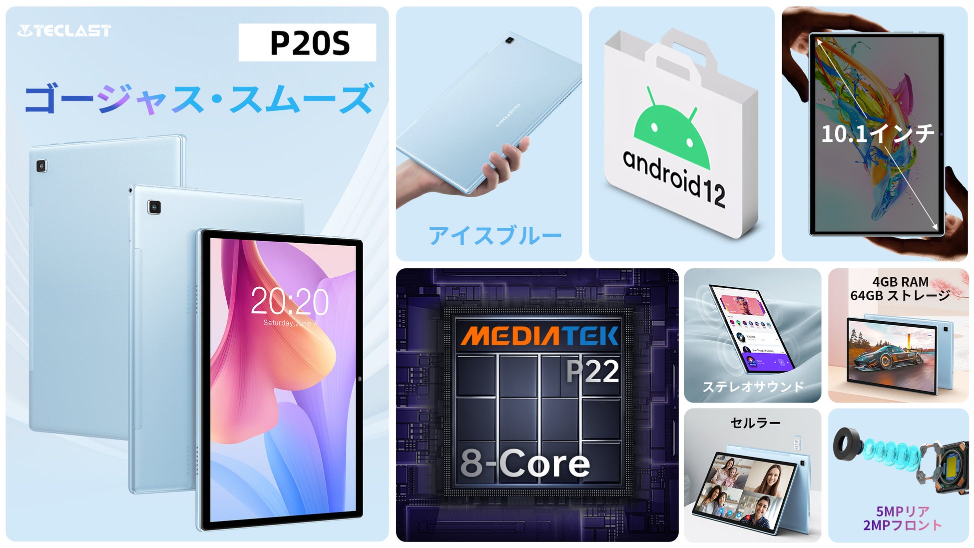 - P20Sは、Media Tek製P22オクタコアプロセッサーを搭載し、Android 12 OS、10.1インチのIPS広視野角ディスプレイ、4GB RAM、1280×800のHD解像度などを備える。セール期間は4月19日で、Amazonでクーポンも配布される。