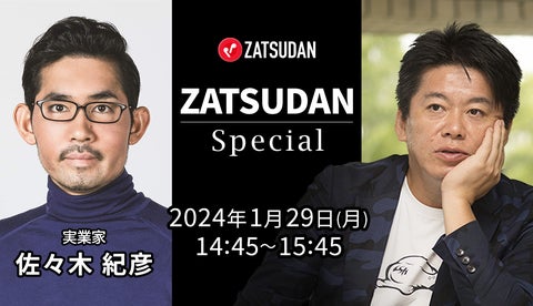 2024年1月29日に開催されるZATSUDANのイベントには、堀江貴文氏と佐々木紀彦氏が出演します。