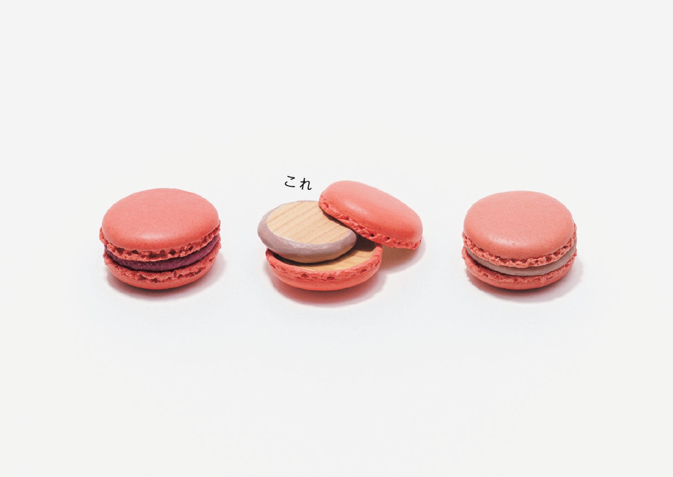 彼の作品は食べ物と並べると本物そっくりで、見分けがつかないほどの精巧さですが、実際には木でできていることがわかります。