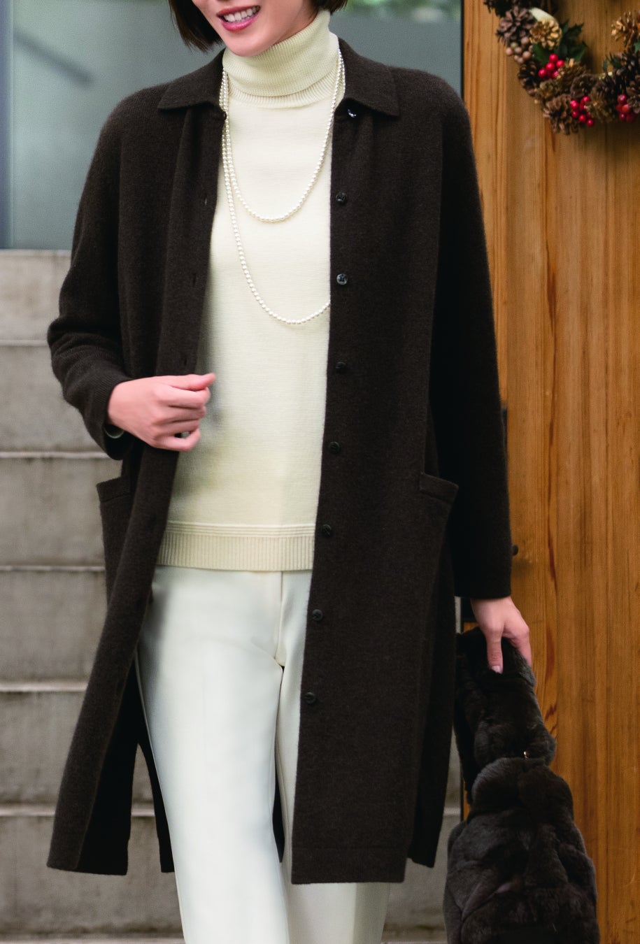 • ヤクの毛で仕立てた衿つきロングコーディガン