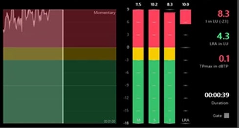 オーディオファイルのラウドネス(音の大きさや音圧)をタイムラインと数値を基準としたグラフで表示。直感的な色分けで、わかりやすく表示できます。