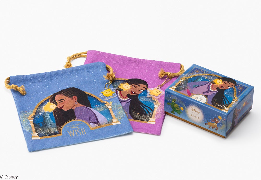 今回の新作は『ディズニー映画『ウィッシュ』/ショコラサンド「見ぃつけたっ」』で、数量限定の「巾着付きセット」も販売されます。