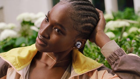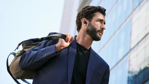 ブースでは、最新のワイヤレスヘッドフォンやイヤフォンを試聴・試着することができます。
