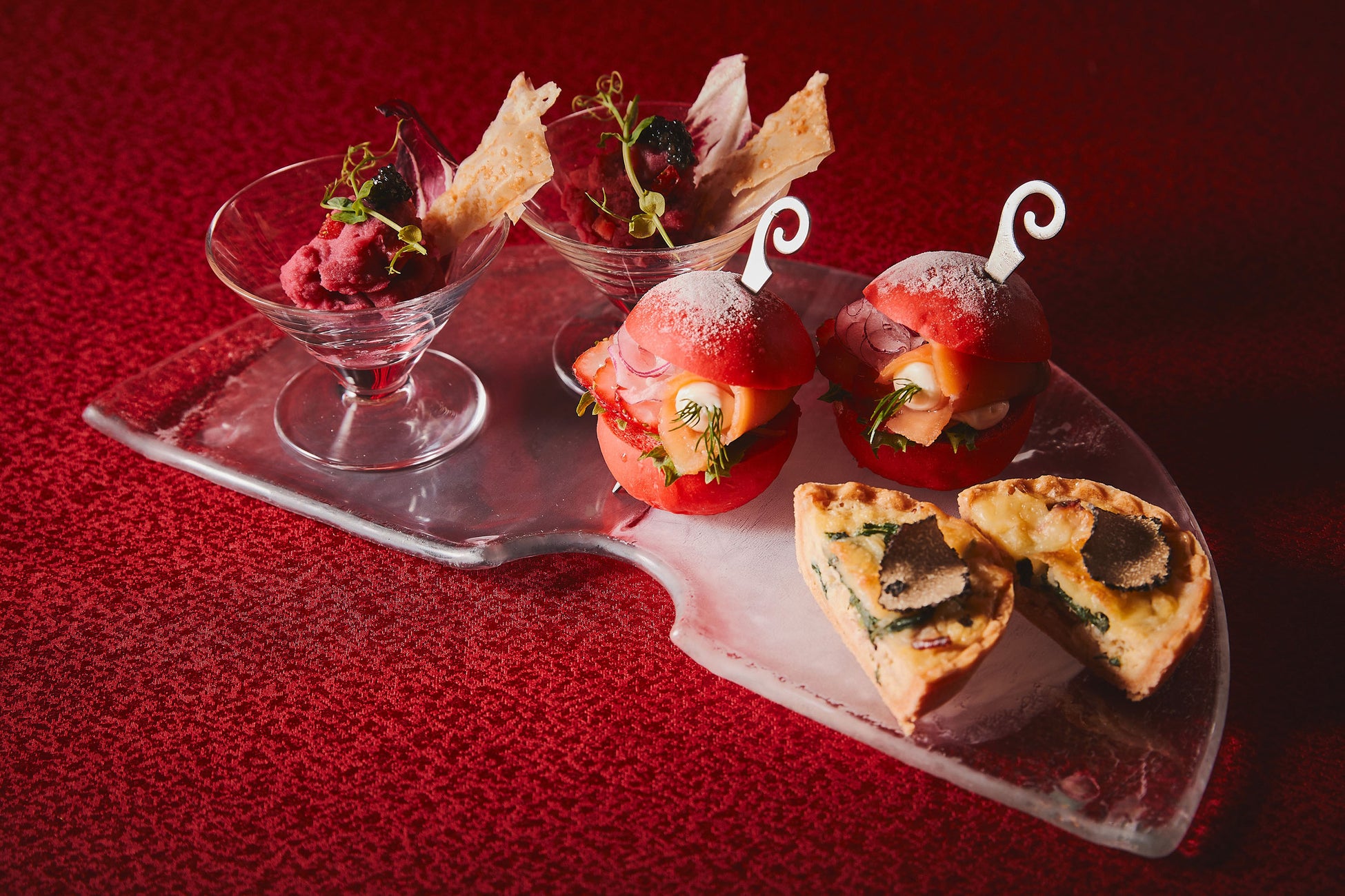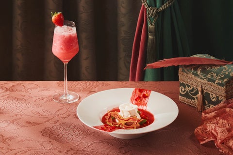 ウェルカムデセールでは、仮面舞踏会の仮面をモチーフにした特別なデザートをご用意しています。