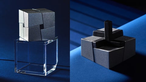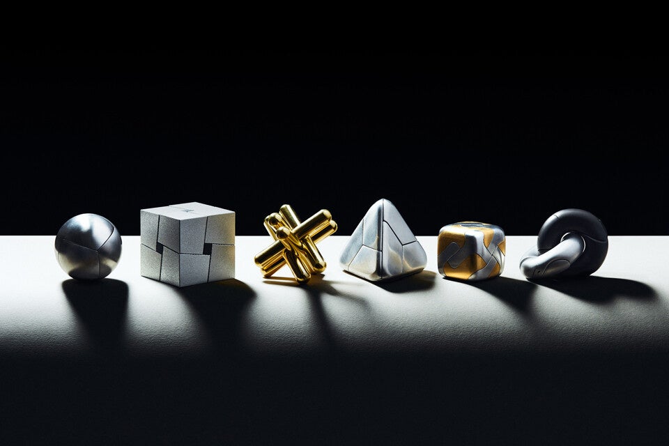 アルミの金属ピースを用いて2つの解き方ができ、彫刻作品のように美しく飾ることができます。
