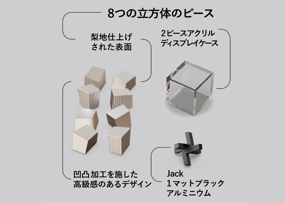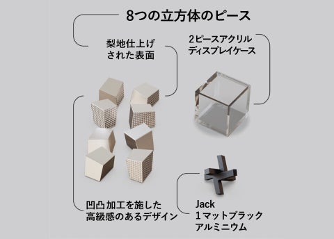 ブラックのピース『Jack』を立方体の中に入れるか、パズル用スタンドにするかの違いがあります。