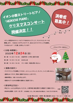 【福岡県小郡市】ストリートピアノでクリスマスコンサート開催!演奏者募集中!