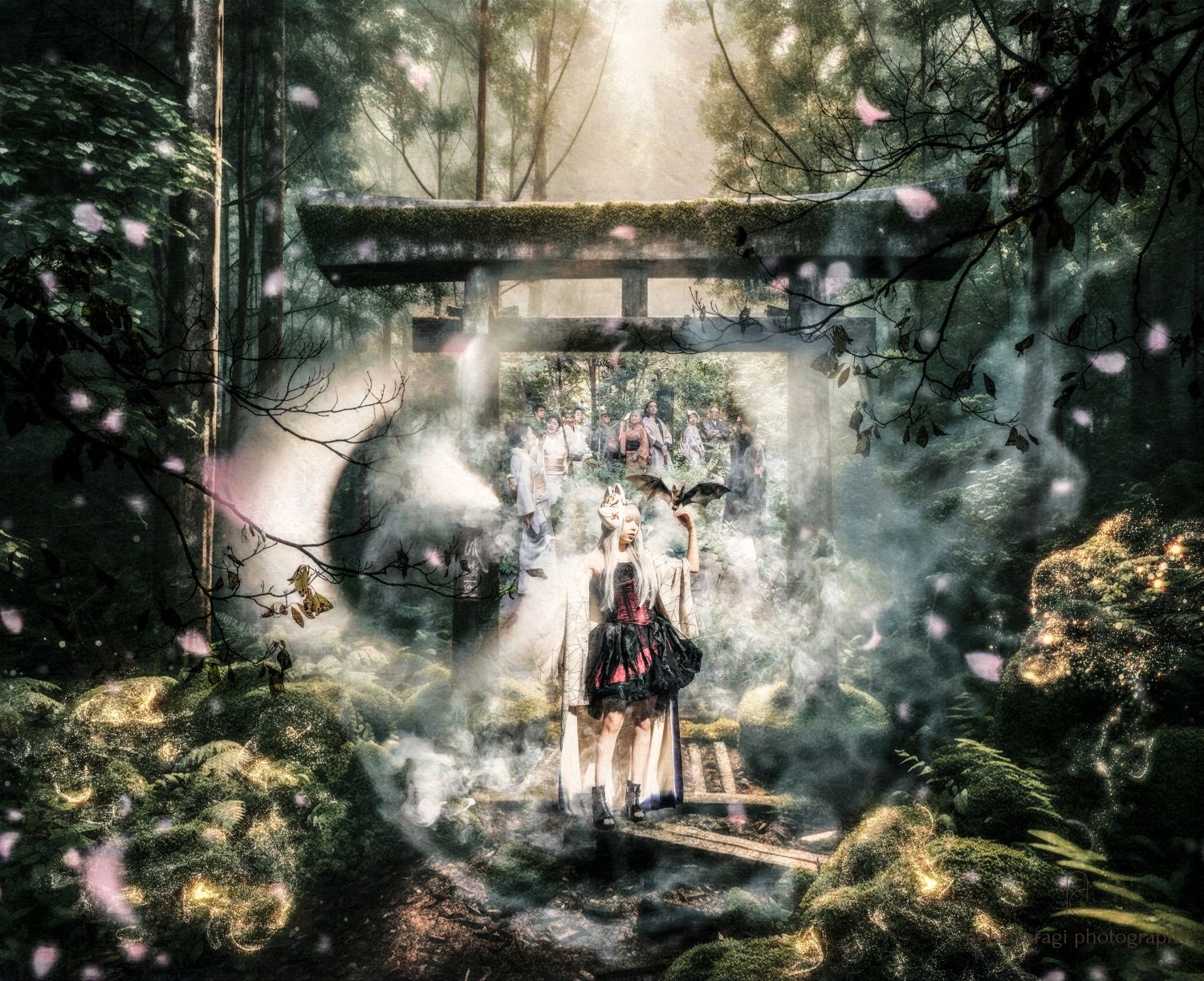 豊穣を願う狐囃子が響く中、二つの世界が交わります。