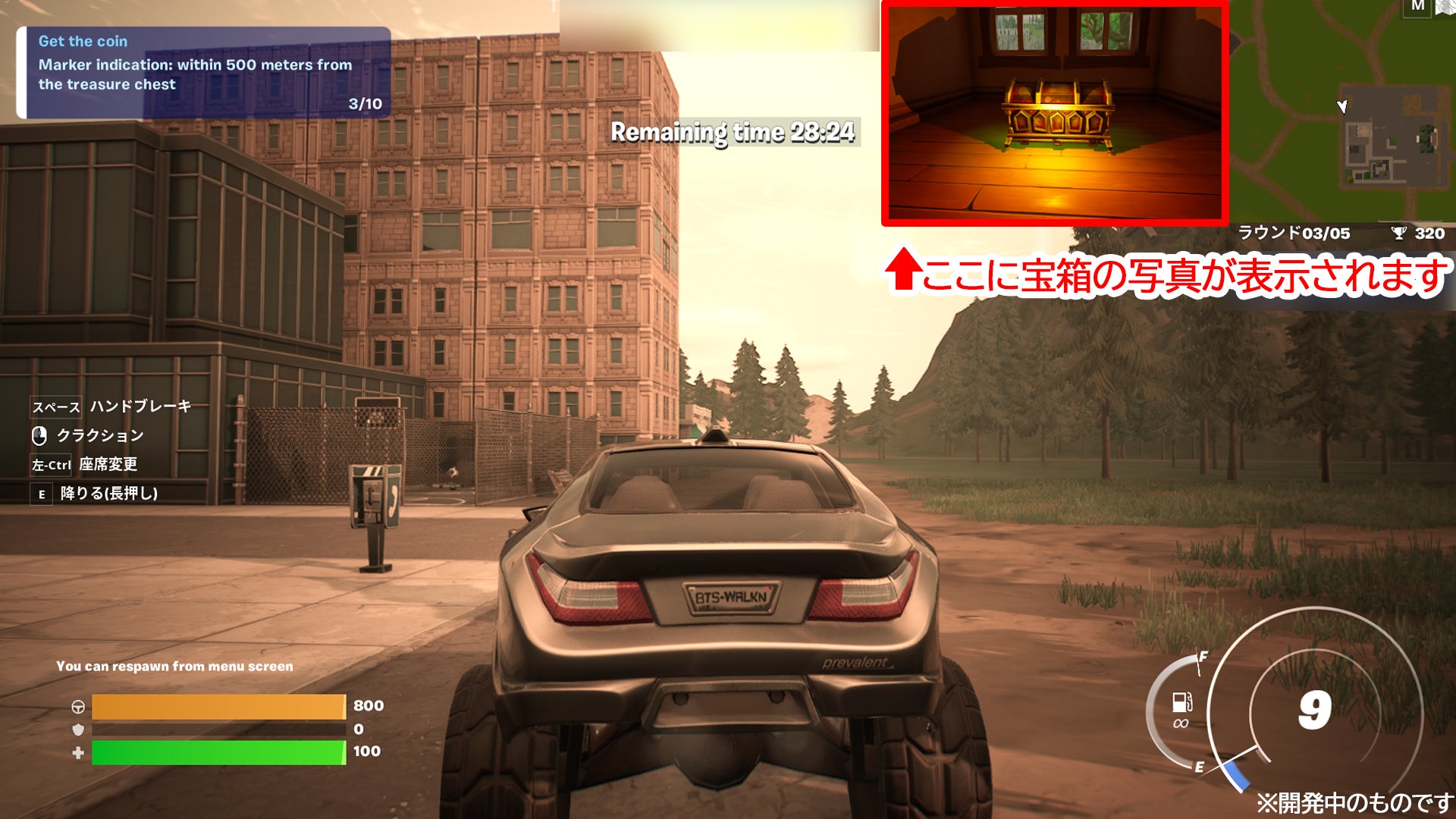 • プレイヤーはワールドに落下し、コインを集めると宝箱の場所が表示される。