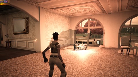 • 宝箱に近づくと距離が表示され、赤く発光する。
