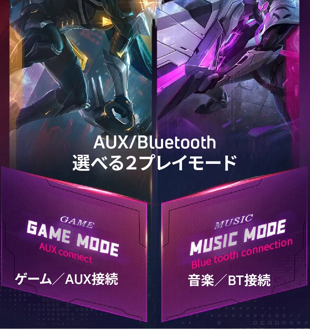 - ワイヤレスで場所を選ばずサウンドを楽しめて、ゲームなどではAUX入力など選べる接続方法